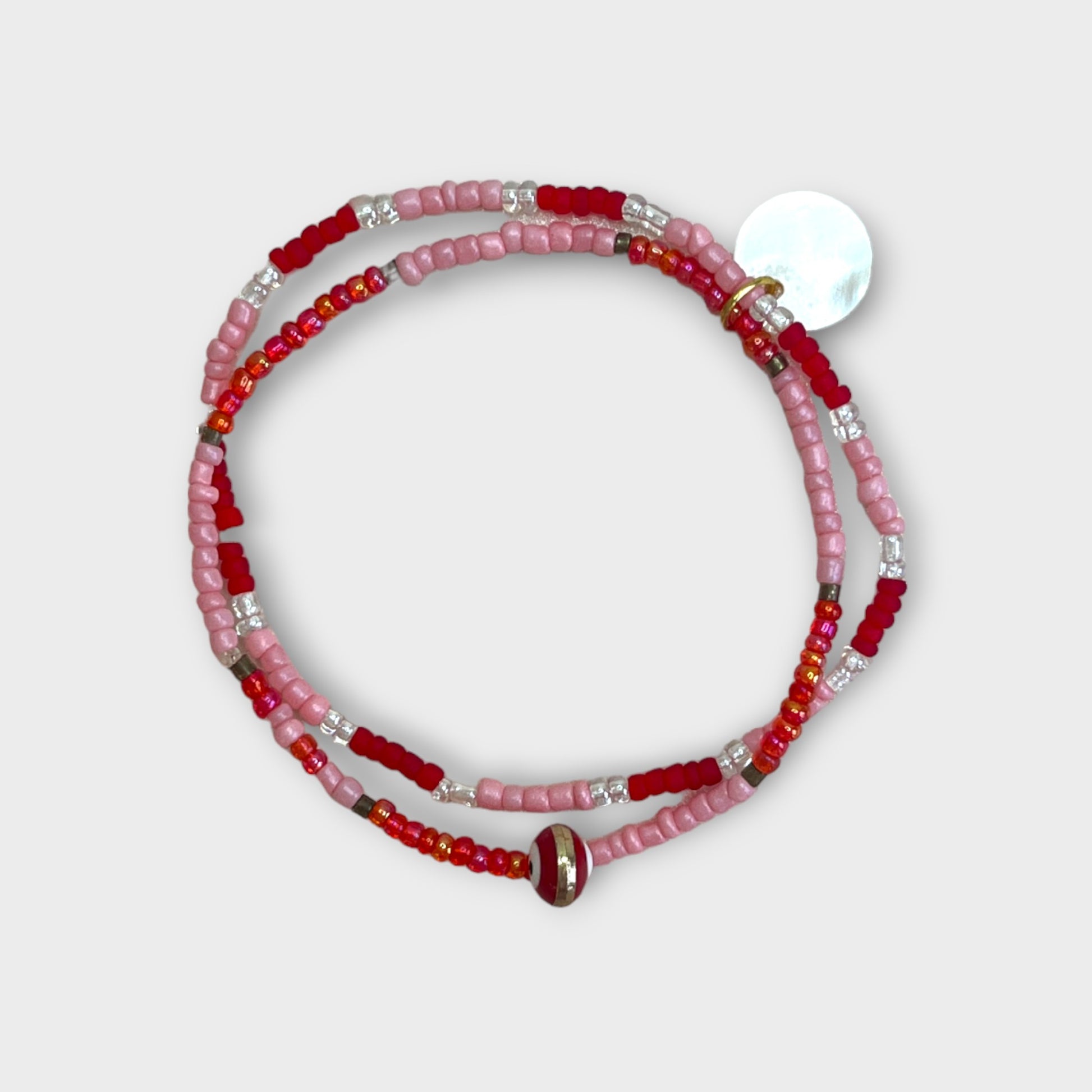 Le modèle Noria est un bijou unique fait main, composé de deux bracelet relié ensemble par un pendentif. Conçu sur une corde élastique de 17 cm environ, il allie élégance et confort.