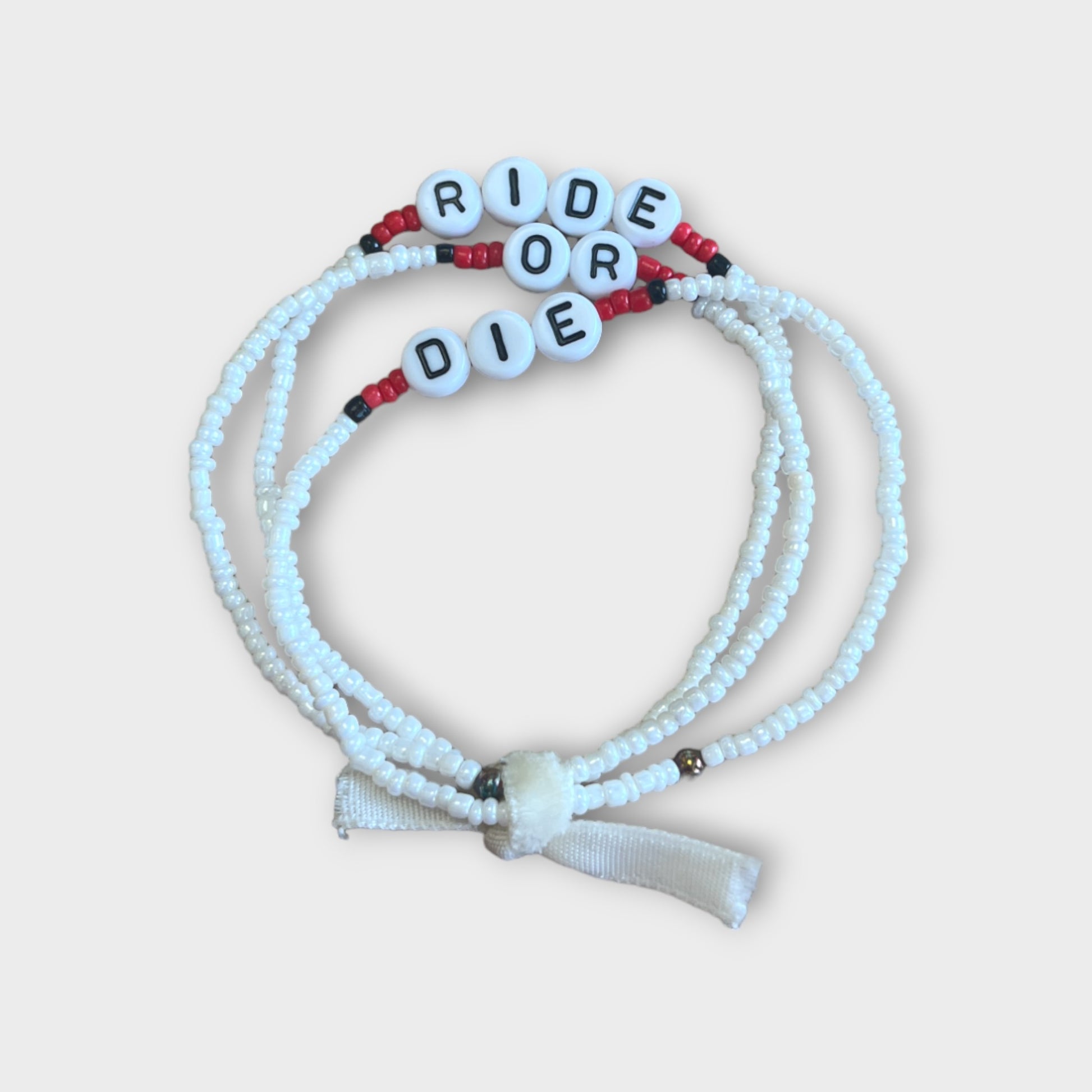 Découvrez les bracelets Vega, le trio avec message, un bijou unique fait main. Composé de perles en verre et acétate sur une corde élastique de 17 cm environ, il combine élégance et confort.